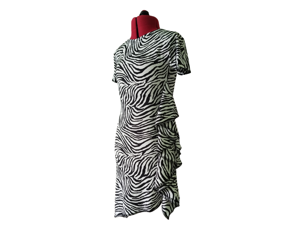 The Aria Latin dress is a staple piece that makes everyday practice special, yet it can also be worn at training camps or even during a performance. The off-shoulder dress has a body-hugging fit, featuring a loose ruffle on one side and a slit on the other side, that accentuates the wearer’s movements. Made of lycra, it is very comfortable and allows for free movement while dancing.