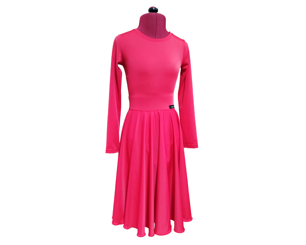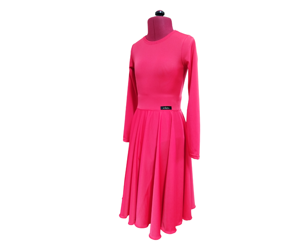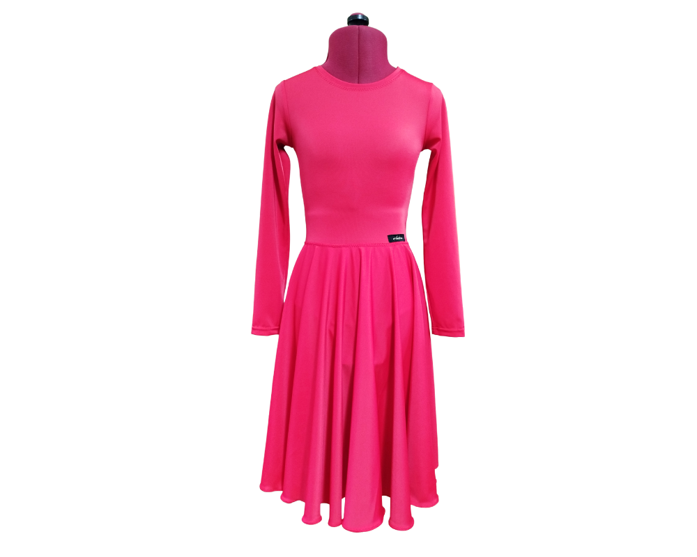 Dóri basic hosszú ujjú versenytánc ruha, beépített body résszel, amely alul kapcsokkal záródik. A ruha alapanyaga minőségi lycra, a szoknyarész egy teljes kör. Szabása a Román Sporttánc Szövetség szabályzatának megfelelő.